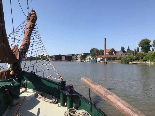In der Woche vor dem Törn wurden fleißig Vorräte eingekauft und gebunkert. Am 21. Juni kam um 10:15 Uhr das lang ersehnte Kommando „Leinen los!“. Über Delfzijl ging es am dritten Tag nach Groningen, wo wir direkt in der Innenstadt festmachen und übernachten konnten. Anschließend führte der Weg bis ins Lauwersmeer. Hier konnte dann neben dem Großsegel und der Fock auch das Besansegel gehisst und schöne Manöver gefahren werden. Auf dem Rückweg konnte dann auch wieder im Dollart gesegelt werden. Bei drei bis vier Windstärken herrschte perfektes Segelwetter. Die Kinder hatten die reinste Freude, wenn das Schiff in den Wellen rollte und ein bisschen Achterbahnfeeling aufkam. Am Sonntag, 29. Juni 2025 haben wir um 15:35 Uhr wieder im Hafen in Leer angelegt.