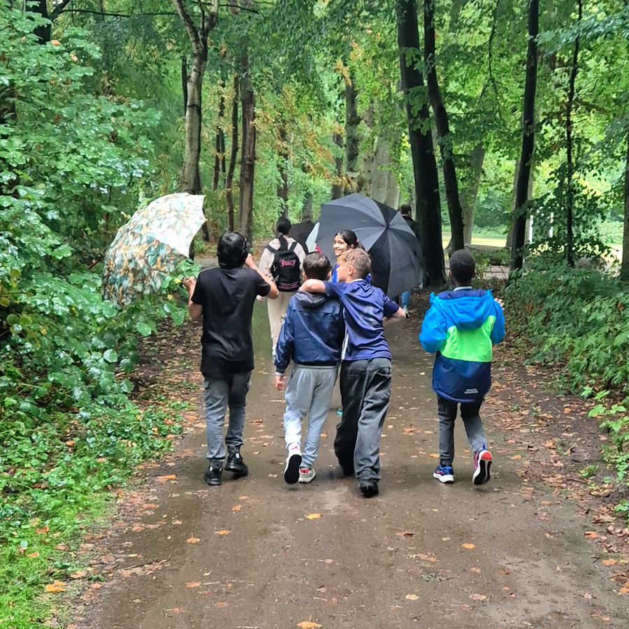 Jeden Morgen sind die Klassen 5a und 5b gemeinsam von der Gutenbergschule Leer zur Kreismusikschule gegangen. Zum Glück hat es nur am Montag geregnet und wir wurden von einigen Lehrern mit Regenschirmen ausgestattet. Auf diesem täglichen Weg konnten sich die Schüler*innen beider Klassen noch besser kennenlernen und es entstanden neue Freundschaften.