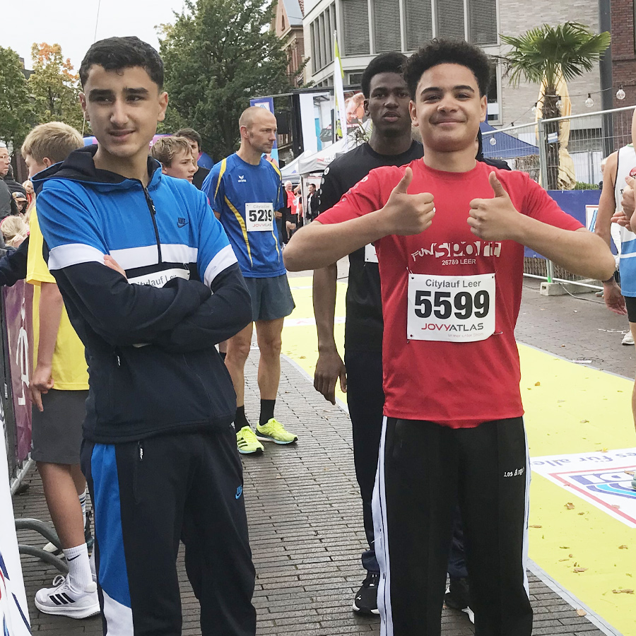 Auch dieses Jahr stellte unsere Schule Läuferinnen und Läufer für den Citylauf am 21. September 2025. Bei nasskaltem Wetter gingen über die Distanzen von 1,1 km, 2,2 km sowie 5 km insgesamt 12 Schülerinnen und Schüler an den Start. Trotz des ostfriesischen Wetters waren die Schülerinnen und Schüler sehr motiviert und freuten sich jeweils auf ihren Lauf. Auch wenn sich in diesem Jahr wieder sehr viele Teilnehmer für die einzelnen Läufe angemeldet hatten, konnten sich unsere Läufer Platzierungen im oberen Tabellendrittel sichern.